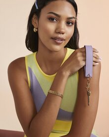 - Wristlet strap with high shine metal key clip